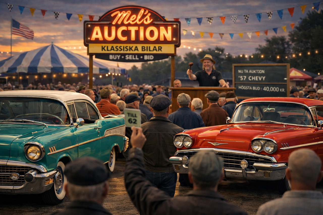 MEL´S AUCTION – STOR NYHET PÅ SUMMER MEET I ÅR!!! Torsdagen den 2 Juli kl 15.30, direkt efter vår bejublade ljudtävling, tänker vi köra Mel´s auction ute på fältet. Vi har ju Sveriges vassaste bilspeaker Thomas Abrahamsson på plats, nu får vi se om han kan bli Sveriges vassaste auktionsförrättare också… Ni behöver naturligtvis föranmäla