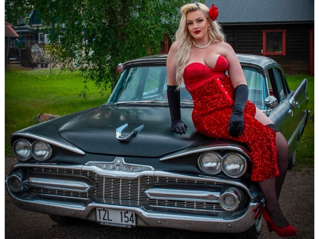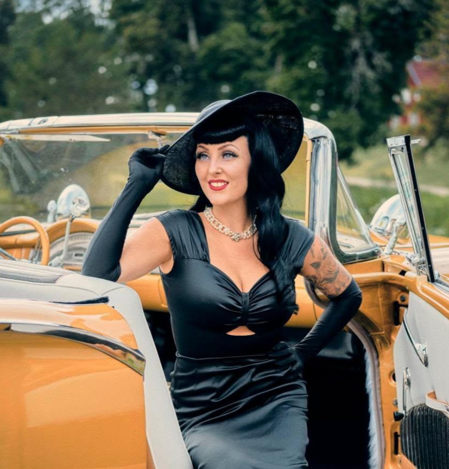 My name is Miss Mallory Sunrise, I’m 27 years old and I’m Närke’s contribution to classic glamour with a modern twist. I love the style of the 1930s and 1940s in both clothes and cars. Classic cars with a powerful engine roar are my weakness.